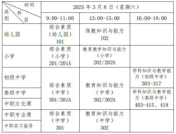 3.報考中職專業課和中職實習指導教師資格的考生,筆試考2個公共科目,科目代碼分別為301、302。